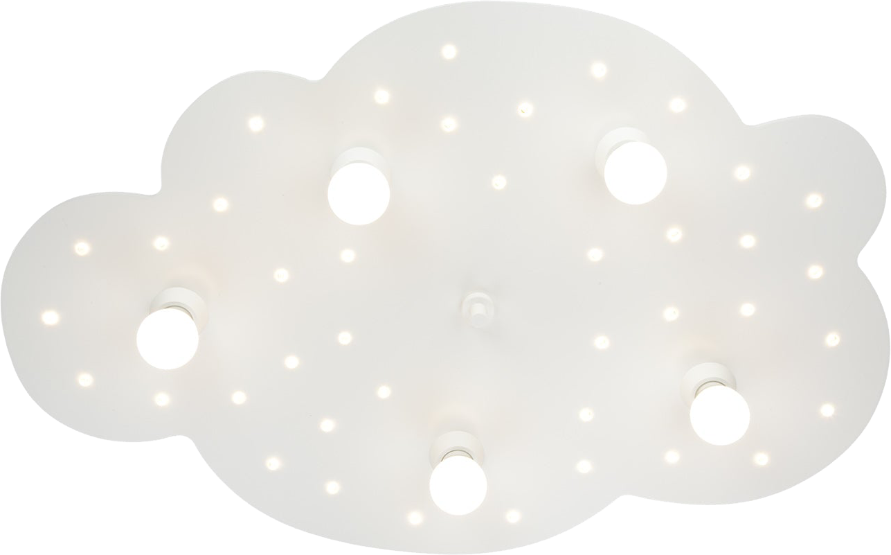 Die Deckenleuchte enthält drei Brennstellen mit einer E14-Fassung und zusätzlich 20 LEDs, die separat hinzugeschaltet werden können.