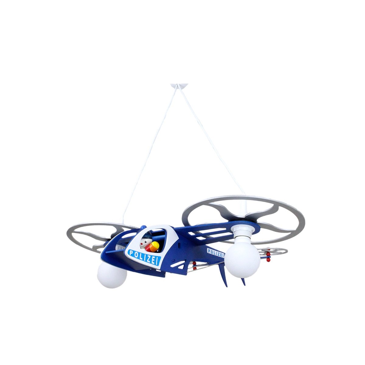 Diese einzigartige Deckenleuchte in Form eines Polizei-Helikopters passt ideal in Kinderzimmer von kleinen Polizeifans. Der Polizeihubschrauber hat zwei Lichtquellen mit E27 Fassungen in die sowohl LED als auch klassische Leuchtmittel - auch dimmbar - geschraubt werden können. Leuchtmittel bitte separat bestellen.