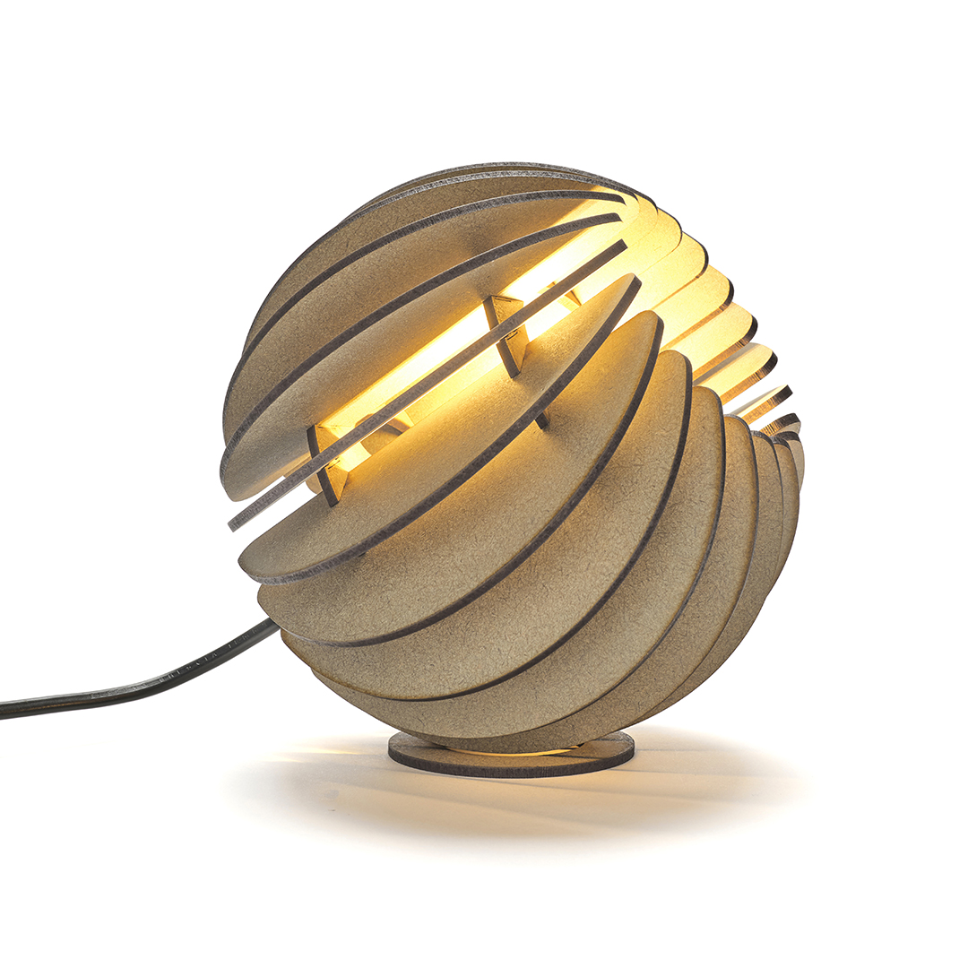 Bei dieser Leuchte dreht sich alles um Kurven. Atmosphere ist eine elegante Tischleuchte aus lasergeschnittenem MDF. Sieht gut aus im Wohnzimmer, Schlafzimmer, Flur … eigentlich überall! Erhältlich in farbigem MDF - Mint, Grau und Schwarz. Die Farbgebung entsteht auf besondere Weise mit einer Farbe auf Leinölbasis. Dadurch entsteht ein schönes Finish, wobei die Textur des MDF sichtbar bleibt.
